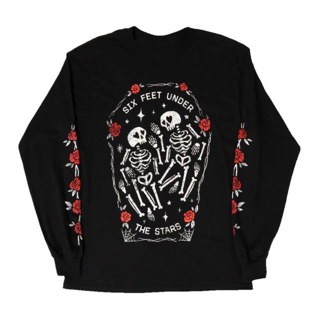 The All Time Low Store Merch Six Feet Under The Stars Long Sleeve is a must-have item for fans of the band All Time Low. This exclusive long sleeve shirt features a stylish design inspired by the iconic song Six Feet Under The Stars. The front of the shirt showcases the band’s name in a bold font, while the back of the shirt displays the evocative lyric Six Feet Under The Stars, creating a striking and memorable look. Made from high-quality materials, this long sleeve shirt is not only fashionable but also comfortable to wear. Whether you’re attending a concert, hanging out with friends, or just looking to show off your love for All Time Low, this Merch Six Feet Under The Stars Long Sleeve is the perfect choice. Add this unique and eye-catching piece to your collection and let your style shine with the essence of All Time Low’s music