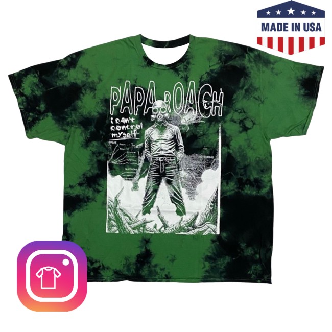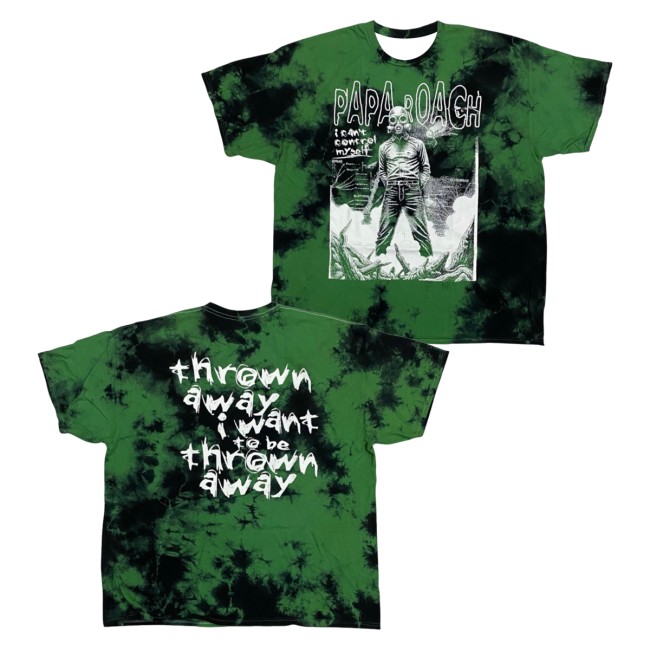Area 23 Merch Papa Roach Short Sleeve Shirt I Can’t Control Myself Green & Black Cloud Wash