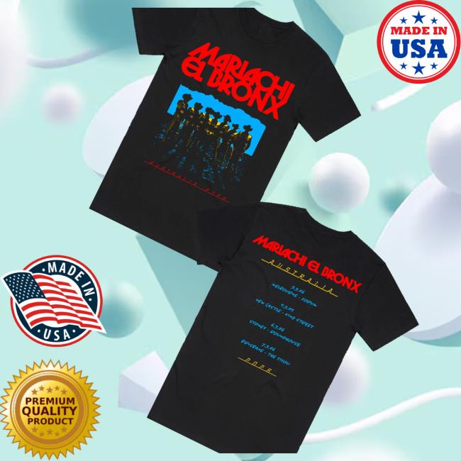 Artist First Merch Store The Bronx Mariachi El Bronx Aus Tour Shirt Black is a unique band merchandise t-shirt created for fans of The Bronx and their mariachi side project Mariachi El Bronx. The shirt celebrates the Australian tour, featuring bold graphics that blend punk rock attitude with traditional mariachi inspired imagery. Printed on a classic black shirt, the design stands out with vibrant artwork and distinctive typography that reflects the band’s creative fusion of musical styles. Made from soft, breathable cotton fabric, it offers a comfortable relaxed fit suitable for concerts, festivals, or everyday wear. High quality printing ensures the tour artwork stays sharp and vibrant even after many washes, making it a perfect collectible for fans who appreciate the energetic crossover between punk rock and mariachi music.