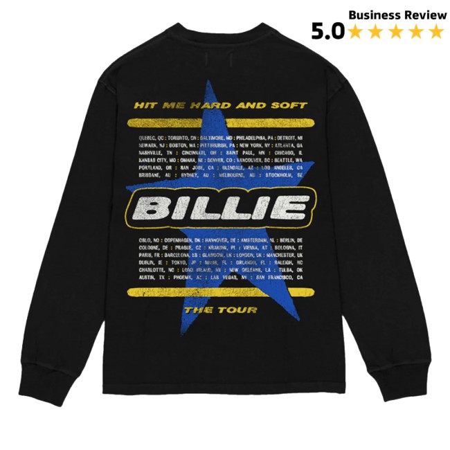 The Billie Eilish Merch Shop Be Photo Star Dateback Black Longsleeve is a stylish and trendy piece of merchandise by the talented artist Billie Eilish. This longsleeve shirt features a unique design that showcases Billie Eilish’s iconic style, making it a must-have item for fans. The black color and dateback detail add a cool and edgy touch to the shirt, making it a versatile piece that can be dressed up or down for any occasion. With this Billie Eilish longsleeve, you can channel your inner star and stand out in style. Make a fashion statement and show your love for Billie Eilish with this eye-catching merch from her official shop