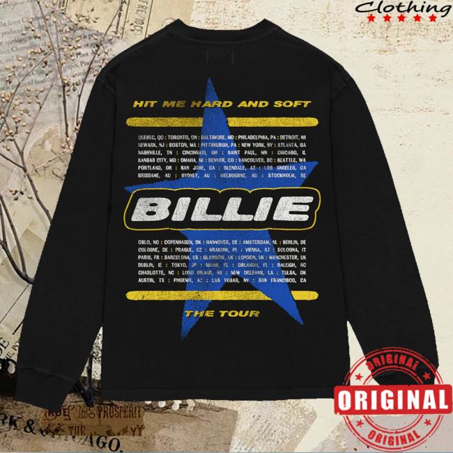 The Billie Eilish Store Merch Be Photo Star Dateback Black Longsleeve is the ultimate addition to any fan’s collection. This unique longsleeve showcases a stylish design featuring a photo of the iconic artist, Billie Eilish, making you feel like a star. The striking black color and dateback detailing add a touch of edginess to your outfit. Made with high-quality materials, this longsleeve is not only trendy but also comfortable to wear. Show off your love for Billie Eilish with this must-have merch item that is sure to turn heads wherever you go