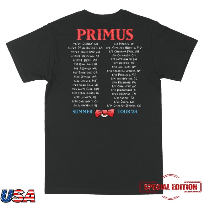 The Club Bastardo Merch Primus – Winged Monkey Summer 2024 Tour T-Shirt is a must-have item for any Primus fan looking to commemorate the band’s Summer 2024 tour in style. This exclusive tour t-shirt features a bold design showcasing the iconic Winged Monkey motif, a nod to the band’s unique and captivating aesthetic. Crafted with high-quality materials, this t-shirt is not only a fashionable statement piece but also a comfortable and durable garment that you can enjoy wearing time and time again. Whether you’re attending one of Primus’s Summer 2024 tour stops or simply want to show your love for the band in your everyday style, the Club Bastardo Merch Primus – Winged Monkey Summer 2024 Tour T-Shirt is the perfect choice. Add it to your collection today and let your fandom shine with this impeccable piece of music merchandise