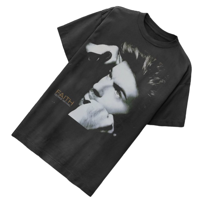 George Michael Merch Faith Faded Photo Tee Black