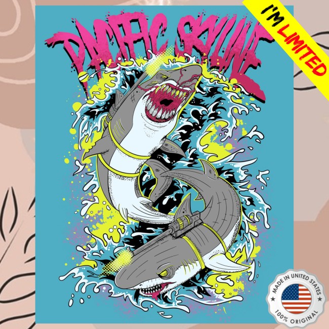 Make a bold statement with the Pacific Skyline “Sharks With Lasers” merch, featuring an eye-catching graphic of fierce sharks armed with lasers against a dynamic Pacific-inspired backdrop. Designed for fans who love edgy, playful, and standout artwork, this piece blends streetwear attitude with a touch of surreal humor.