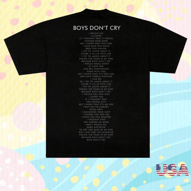 The Cure Merch Shop offers you a remarkable piece with this Boys Don’t Cry Black Tee. The shirt features a classic black color that is adorned with iconic elements from The Cure’s history, making it a must-have for any fan. The Boys Don’t Cry graphic on the front is eye-catching and instantly recognizable, showcasing the band’s enduring appeal. Crafted from high-quality materials, this tee is not only stylish but also comfortable to wear all day long. Whether you’re attending a concert, hanging out with friends, or simply expressing your love for The Cure, this tee is the perfect choice. Make a statement and show your support for the legendary English band with this unique and trendy Boys Don’t Cry Black Tee from The Cure Merch Shop