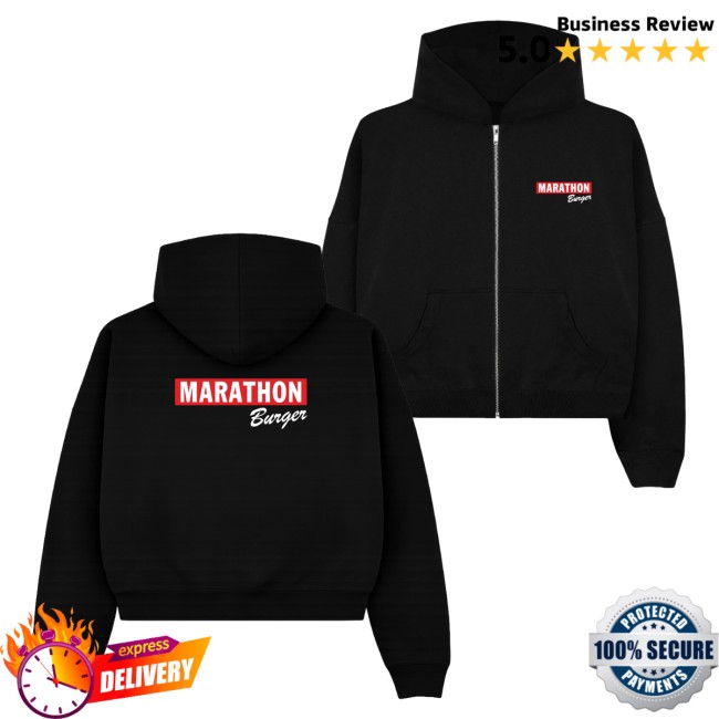 The Marathon Clothing Merch Store Marathon Burger Zip-Up Hoodie Black is a versatile and stylish addition to your wardrobe. This zip-up hoodie is part of the exclusive collection available at The Marathon Clothing Merch Store, designed to combine comfort and fashion seamlessly. The distinctive ‘Marathon Burger’ graphic adds a unique touch to the classic black hoodie, making it a standout piece for any casual or streetwear outfit. Crafted with high-quality materials, this hoodie is not only stylish but also durable and warm, perfect for chilly days and cozy nights. The zipper closure provides added convenience and allows for easy layering, while the hood offers extra protection against the elements. Whether you’re running errands or hanging out with friends, the Marathon Burger Zip-Up Hoodie Black is the perfect choice for staying comfortable and on-trend. Elevate your wardrobe with this must-have piece that effortlessly combines style and functionality.”,