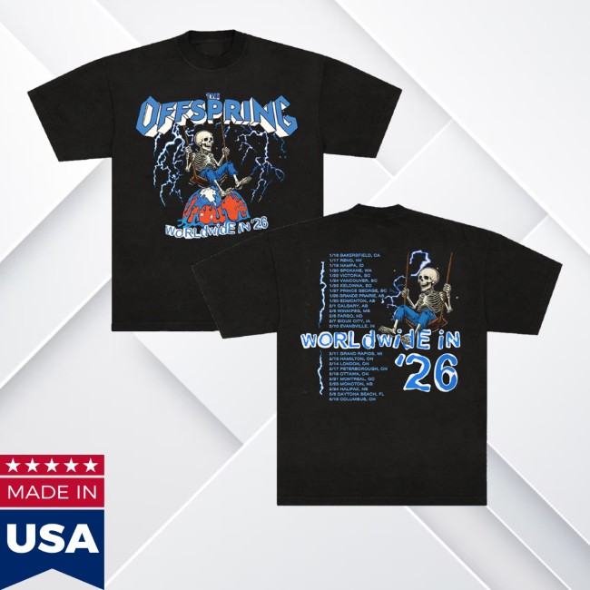 The Offspring Store Merch Swinging Skeleton 2026 Tour Shirt