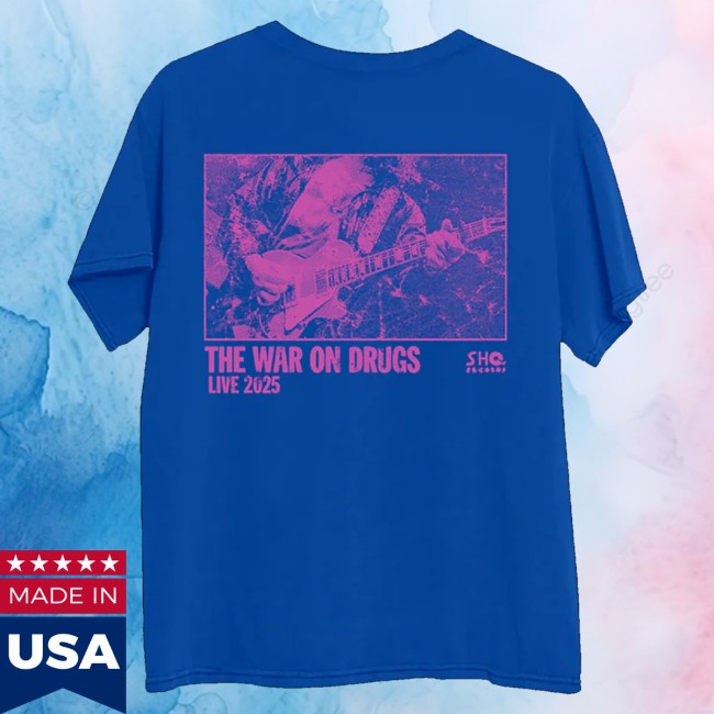 The The War On Drugs Live 2025 Blue tee celebrates the band’s unforgettable 2025 performances with a vibrant blue design. Stylish and comfortable, this shirt is perfect for fans who want to showcase their love for the band while adding a bold, eye-catching piece to their wardrobe. Ideal for concerts, casual wear, or as a standout addition to any merch collection.