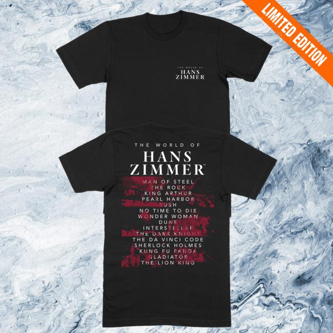 The World Of Hans Zimmer Merch Store Titles Live Photo Black Shirt is the perfect addition to any music lover’s wardrobe. This black shirt features a stunning live photo of Hans Zimmer, the renowned composer known for his legendary film scores. The World Of Hans Zimmer Merch Store offers an exclusive collection of merchandise inspired by Zimmer’s iconic work. The high-quality design and comfortable fit of this shirt make it a must-have for fans of Zimmer’s music and film enthusiasts alike. Show your admiration for this musical genius with The World Of Hans Zimmer Merch Store Titles Live Photo Black Shirt