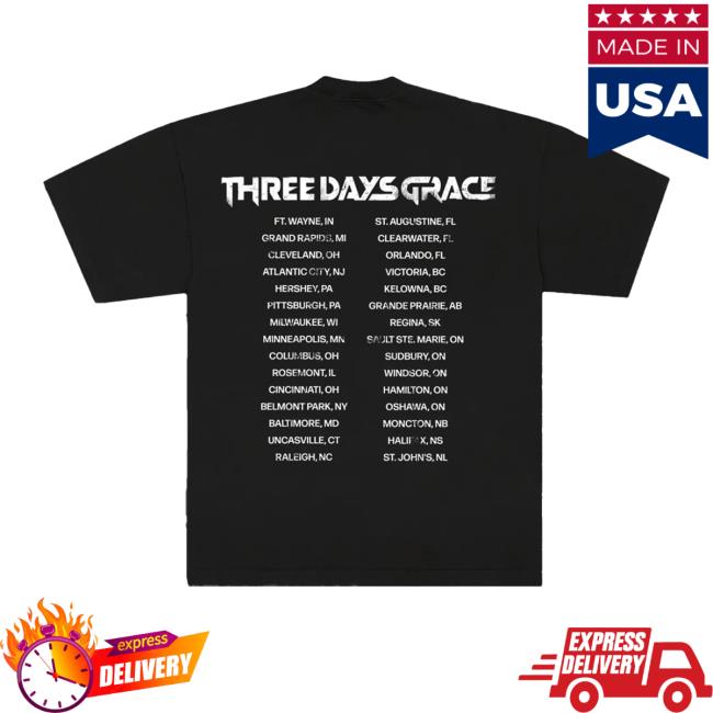 Three Days Grace Merch Store 2026 Album Stripe Tour Shirt